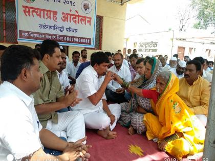 दरम्यान अण्णांच्या आंदोलनाला पाठिंबा म्हणून राळेगणसिद्धीचे उपसरपंच लाभेष औटी व त्यांचे सहकारी ज्ञानेश्वर हावळे, रमेश औटी, नंदकुमार मापारी, तुकाराम क्षीरसागर यांनी गेल्या काही दिवसांपासून उपोषण सुरु केले होते. ग्रामस्थांच्या आग्रहाखातर ते उपोषण आज मागे घेण्यात आले. लाभेष औटी यांनी आपल्या मातोश्री जनाबाई औटी व जेष्ठ महिला तोलाबाई पठारे यांच्या हस्ते लिंबू सरबत घेऊन उपोषण सोडले. यावेळी शिवसेनेचे माजी तालुकाप्रमुख निलेश लंके, पंचायत सभापती राहूल झावरे, उपसभापती दीपक पवार, दादासाहेब पठारे, माजी सरपंच जयसिंगराव मापारी, उपसरपंच लाभेश औटी, सोन्याबापू भापकर, रमेश औटी, विलास औटी, शंकर नगरे, मंगल मापारी आदी उपस्थित होते.