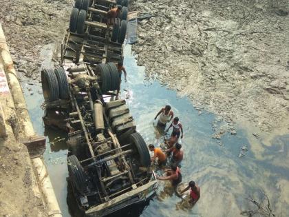 बुलडाणा: पुर्णा नदीच्या पुलावर बस-कंटेनरची धडक झाल्याने कंटेनर नदीपात्रात कोसळला, चालकाचा मृत्यू