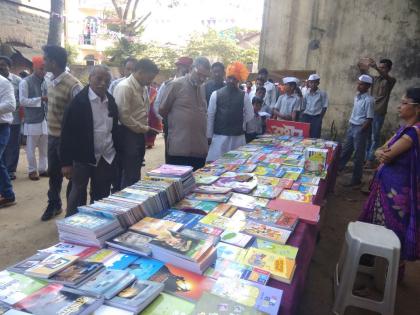 वारकऱ्यांच्या वेशभूषेतील विद्यार्थी ग्रंथदिंडीत सहभागी