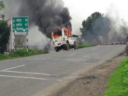 - महाराष्ट्र बंदच्या हाकेला हिंगोलीत प्रतिसाद, खानापूर येथे पोलीस जीप पेटवली