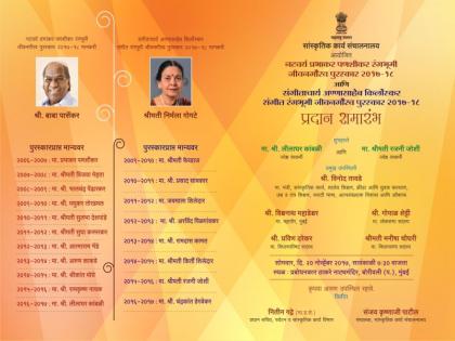२० नोव्हेंबर रोजी प्रबोधनकार ठाकरे नाट्यमंदिर येथे सायंकाळी ७.३० वाजता आयोजित एका विशेष सांस्कृतिक सोहळयात यापूर्वीचे पुरस्कार प्राप्त ज्येष्ठ रंगकर्मी लीलाधर कांबळी व रजनी जोशी यांच्या हस्ते हे दोन्ही पुरस्कार प्रदान करण्यात येणार असून सांस्कृतिक कार्य मंत्री विनोद तावडे, महापौर विश्वनाथ महाडेश्वर, खासदार गोपाळ शेट्टी, आमदार प्रविण दरेकर आणि आमदार मनीषा चौधरी यांच्या प्रमुख उपस्थितीत हा समारंभ आयोजित करण्यात आला आहे.