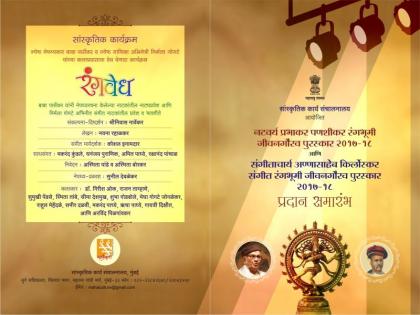 या पुरस्कार सोहळयाच्या निमित्ताने दोन्ही पुरस्कारार्थींच्या कार्यकर्तृत्वाचा वेध घेणारा रंगवेध ! हा कार्यक्रम प्रथितयश कलावंत सादर करणार आहेत. डॉ. गिरीश ओक, सुमुखी पेंडसे, स्मिता तांबे, सीमा देशमुख, शुभा गोडबोले, मेधा गोगटे जोगळेकर, राहुल मेहेंदळे, समीर दळवी, मकरंद पाध्ये, ऋचा पाध्ये, भक्ती रत्नपारखी आणि अरविंद पिळगांवकर हे कलाकार नाट्यगीते व नाट्यप्रवेश सादर करतील.