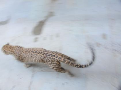 पोलिसांच्या काठ्यांमुळे बिथरला बिबट्या