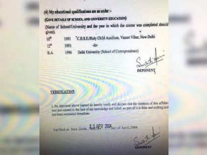 2004 मध्ये इराणी यांनी चांदणीचौक मतदारसंघातून निवडणूक लढवली होती. त्यावेळो आपण बीएपर्यंतचं शिक्षण पूर्ण केल्याची माहिती त्यांनी शपथपत्रात दिली होती. दिल्ली विद्यापीठाच्या मुक्त शिक्षण विभागातून आपण बीए केल्याचं त्यांनी शपथपत्रात नमूद केलं होतं. पदवीपर्यंतचं शिक्षण पूर्ण केल्याचं त्यांनी स्पष्टपणे म्हटलं होतं.