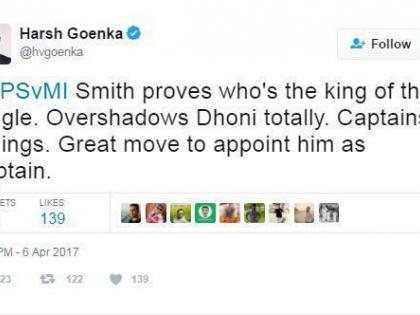 आता आयपीएलला सुरूवात झाल्यानंतर पुण्याचे मालक हर्ष गोयंका या चर्चेत आगीत तेल ओतण्याचं काम करत आहेत. पुणे संघाच्या झालेल्या दोन्ही सामन्यानंतर त्यांनी धोनीवर अप्रत्यक्षपणे टीका केली. पंजाबविरूद्ध झालेल्या पराभवानंतर त्यांनी आपल्या संघातील खेळाडूंच्या स्ट्राइक रेटचा फोटो ट्विट केला. यामध्ये अप्रत्यक्षपणे संघात धोनीचा सर्वात खराब स्ट्राइक रेट असल्याचं त्यांनी म्हटलं. ट्विटमध्ये जरी त्यांनी धोनीचं नाव घेतलं नसलं तरी हे ट्विट धोनीसाठीच होतं हे धोनीच्या चाहत्यांनी हेरलं आणि गोयंका यांच्यावर टीकेचा भडीमार सुरू केला.