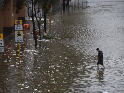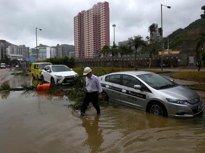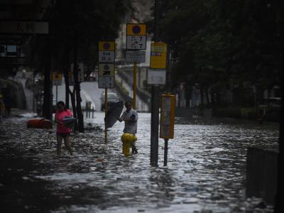 हाँगकाँगमध्ये अनेक ठिकाणी पुरपरिस्थिती निर्माण झाली असून वाहतूक ठप्प झाली आहे.