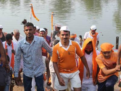 नदी पूजन करताना यात्रेकरू.(छाया : दीपक जाधव )
