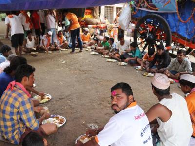 पूजेनंतर सर्वांनी एकत्र जेवणाचा आस्वाद घेतला.(छाया : दीपक जाधव )