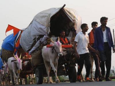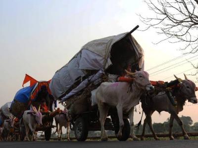 ‘दख्खनचा राजा’श्री क्षेत्र जोतिबाची चैत्र यात्रा येत्या शनिवारी होत आहे. देवाच्या दर्शनाच्या ओढीने महाराष्ट्र, कर्नाटकासह कानाकोपºयांतील भाविकांची पावले आता डोंगराच्या दिशेने वळू लागली आहेत. यात्रेला बैलगाडीतून जाण्याची परंपरा आजही जोपासली जात असून कोल्हापुरातील पंचगंगा नदीघाटावर या यात्रेकरूंचा मुक्काम असतो. हे यात्रेकरू सोमवारी श्री जोतिबाची पूजा करत होते. (छाया : दीपक जाधव )