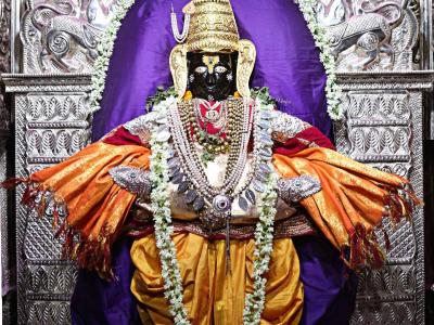 जोतिबा येथील चैत्र यात्रेला मंगळवारी कामदा एकादशी पासून सुरुवात झाली. यानिमित्त जोतिबाची विठ्ठल रूपात बांधण्यात आलेली पूजा ही पूजा विनोद मिटके, तुषार झुगर, केदार शिंगे, रोहन सांगळे, सतीश मिटके व सुमित भिवंदने यांनी बांधली. (छाया : दीपक जाधव )