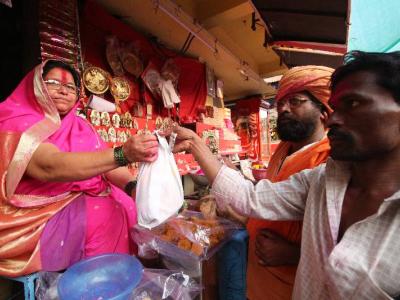 राज्यात प्लॅस्टिक बंदी लागू केल्यामुळे जोतिबा येथील चैत्र यात्रेत दुकानदारांकडून कापडी पिशवीचा वापर वाढला आहे. (छाया : दीपक जाधव )