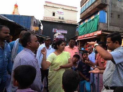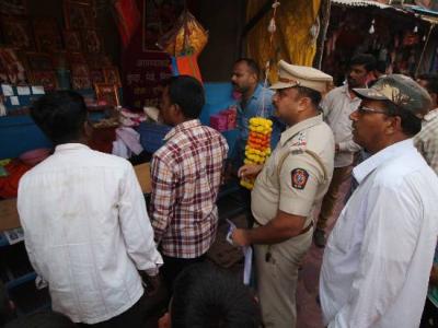 जोतिबा येथील मंदिर परिसरातील दुकानदारांना अग्निरोधक सिलेंडर घेण्याबाबत प्रांताधिकारी अजय पवार यांनी सूचना दिल्या. (छाया : दीपक जाधव )