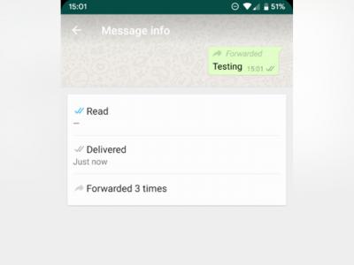 'Forwarding Info' हा पर्याय युजर्सना मेसेज इन्फो सेक्शनमध्ये दिसणार आहे. कोणता मेसेज कितीवेळा फॉरवर्ड झाला आहे हे यामुळे पाहता येईल. मेसेज कितीवेळा फॉरवर्ड झाला आहे हे पाहण्यासाठी तो आधी तुम्ही फॉरवर्ड केला पाहिजे. फॉरवर्ड केल्यानंतर जर तुम्ही मेसेज इन्फो चेक केली तर तर तुम्हाला मेसेज कितीवेळा फॉरवर्ड केला आहे याची माहिती मिळेल.