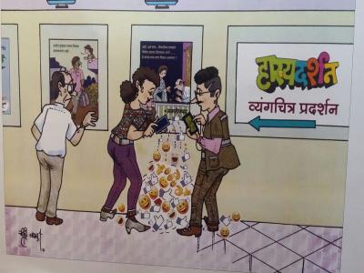 देश-परदेशातील व्यंगचित्रकार प्रदर्शनात सहभागी झाले आहेत.