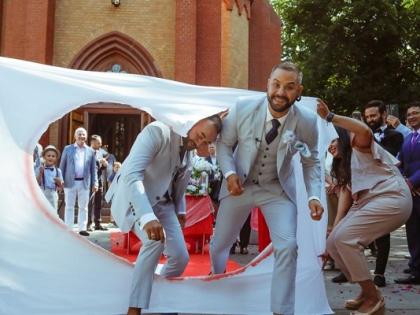 या गे वेडिंगचे फोटो कतरीनाने तिच्या इन्स्टास्टोरीवर शेअर केलेत. या लग्नात कतरीना धम्माल मज्जा करताना दिसली. पेस्टल ब्ल्यू कलरच्या लंहग्यामध्ये तिने धम्माल डान्सही केला. या डान्सचा व्हिडीओही सोशल मीडियावर व्हायरल होतोय.