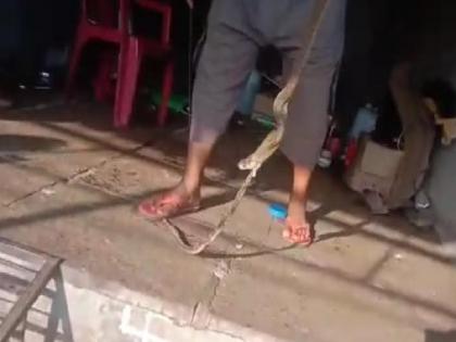 पोर्ले तर्फ ठाणे : बेडूक, उंदीर, सरडा, यासारखे अन्य जीव नागाचे मुख्य भक्ष्य मानले जातात. परंतू भूकेसाठी नागाने घोणस जातीच्या विषारी सापाला गिळकृत केलेली आश्चर्यकारक घटना पोर्ले तर्फ ठाणे (ता.पन्हाळा) येथील शेतकरी शामराव नायकू चेचर यांच्या जनावराच्या गोठ्यात अनुभवायास मिळाली. जंगलांची संख्या घटू लागल्याने जैवविविधतेतील अस्तित्वाला धोका पोहचू लागला आहे. त्यामुळे अन्नाच्या शोधात वन्यप्राण्यांचा मानव वस्तीतील वाढता शिरकाव चिंताजनक आहे.