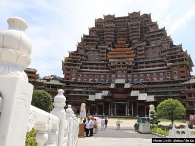 चीनमध्ये एक इमारत लाकडांपासून बनविण्यात आली आहे. ही इमारत 24 मजल्यांची आहे. या इमारतीचे खांब कॉंक्रिटपासून बनविण्यात आले आहेत. या इमारतीची उंची 99.9 मीटर इतकी आहे.