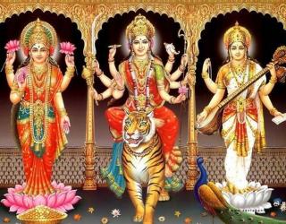 श्री महाकाली, श्री महालक्ष्मी , श्रीमहासरस्वती देवीची पूजा करून देवीसमोर तिसरी माळ बांधावयाचा दिवस