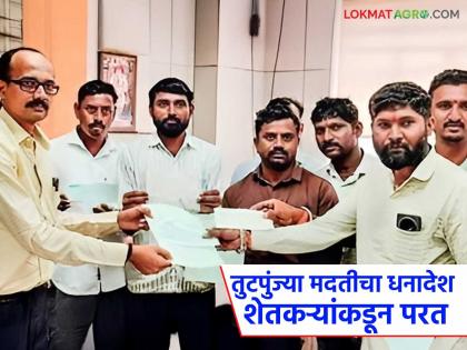 त्यातूनच तालुक्यातील रामपुरा, कजवाडे आदी काटवन भागातील शेतकऱ्यांनी मिळालेल्या मदतीचे धनादेश परत करण्यास सुरुवात केली असून, बुधवारी १० ते १२ शेतकऱ्यांनी तहसीलदार सोनवणे यांच्याकडे धनादेश सुपूर्द केले.