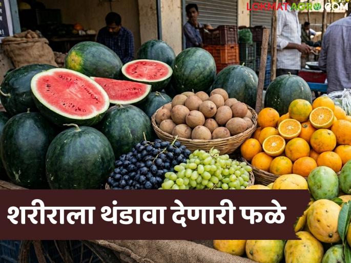 उन्हाळ्यात शरीराला थंडावा देणारी फळे१) कलिंगडया फळामध्ये २२ टक्के पाणी असते. शिवाय फायबर, व्हिटॅमिन सी, व्हिटॅमिन ए, पोटॅशियम, मॅग्नेशियम, अँटिऑक्सिडेंट लाइकोपीन असून, जे रक्तदाब नियंत्रित ठेवण्यास मदत करते.२) टरबूजटरबूजमध्ये भरपूर पाणी व फायबर असल्याने ते शरीराला हायड्रेट ठेवते. पचनसंस्था सुधारते. कमी कॅलरी व जास्त फायबरमुळे वजन कमी करण्यासाठी टरबुजाचा रस फायदेशीर ठरतो.३) चिकूचिकू हे ऊर्जा, जीवनसत्त्व (अव क), कॅल्शियम, फायबरचा उत्तम स्रोत असलेले गोड फळ आहे. हाडे मजबूत करते, रोगप्रतिकारक शक्ती वाढवते. शरीराला त्वरित ऊर्जा देण्यासाठी व मानसिक ताण कमर करण्यासाठी अत्यंत फायदेशीर आहे.४) द्राक्षक जीवनसत्त्व व अँटीऑक्सिडंट्सने समृद्ध असून, हृदयाचे आरोग्य, रोगप्रतिकारक शक्ती व पचनासाठी अत्यंत उपयुक्त फळ आहे. रक्तदाब नियंत्रित करते, डोळ्यांचे आरोग्य राखते. त्वचेसाठी फायदेशीर आहे. फायबर व पाण्याचे प्रमाण जास्त असल्याने वजन नियंत्रित राहते.५) संत्रीउन्हाळ्यात निरोगी राहण्यासाठी संत्री उपयुक्त आहेत. पोटॅशियमचे चांगले स्रोत असून, ९० टक्के पाणी असलेले हे फळ व्हिटॅमिन सी, ए, कॅल्शिअम व फायबरने समृद्ध आहे.६) आंबाफळांचा राजा असलेल्या आंब्यामध्ये बऱ्याच प्रमाणात कॅलरीज असतात. त्यात जीवनसत्त्व अ आणि क असून, सोडियम, फायबर, २० पेक्षा अधिक जास्त खनिजे असल्याने उष्णतेपासून संरक्षण करतात.