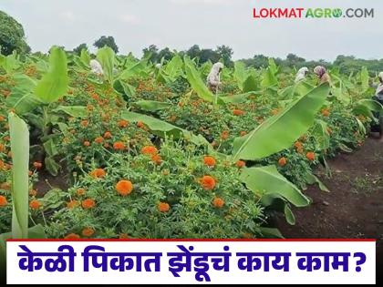 जळगाव : केळी बागेत आंतरपीक म्हणून झेंडू फुलाची लागवड बात्सर येथील तरुण शेतकरी योगेश भागवत पाटील यांनी केली आहे. उत्पन्नाबरोबरच केळीवर येणाऱ्या सीएमव्ही व्हायरस सारख्या रोगाला प्रतिबंध यातून होत आहे. केळी बागेचा गोडवा व झेंडूचा सुगंध अशी आंतरपिकाची जोड देणारा हा नावीन्यपूर्ण प्रयोग आहे.
