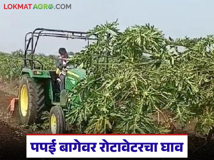 Web Summary : Falling prices and transport issues forced a Jalgaon farmer to destroy his papaya crop with a rotavator. Heavy rains and lack of laborers compounded the losses, despite his efforts to protect the farm from wild boars.