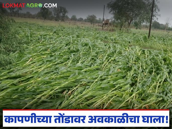 महागडी बियाणे, खत-औषधांचे वाढते दर आणि त्यासाठी घेतलेले कर्ज यामुळे शेतकरी आधीच आर्थिक अडचणीत असताना कापणीच्या तोंडावर आलेले पीक अवकाळी पावसाने जमीनदोस्त झाले आहे.