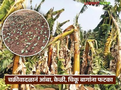 सातोली येथील अशोक गाडे यांची दोन एकर क्षेत्रातील केळीची बाग काढणीसाठी पूर्णपणे तयार होती. मात्र, बुधवारी दुपारी झालेल्या जोरदार वादळामुळे ही संपूर्ण बाग डोळ्यांदेखत भुईसपाट झाली.