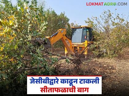 बुलढाणा जिल्ह्याच्या जळगाव जामोद तालुक्यातील आसलगाव येथील शेतकरी श्रावण पुंजाजी श्रीनाथ यांनी वाढत्या किडीच्या प्रादुर्भावामुळे वैतागून एक हेक्टर क्षेत्रावरील सीताफळाची फळबाग जेसीबीच्या साह्याने नष्ट केली.