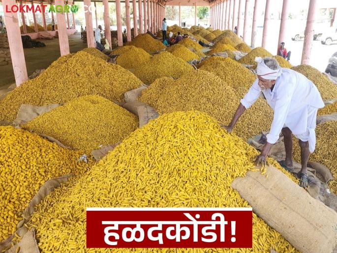 वायदे बाजारात (फ्युचर्स) हळदीचे दर गगनाला भिडत असताना, प्रत्यक्ष मोंढ्यात मात्र व्यापाऱ्यांकडून कमी दराने बोली लावली जात असल्याने शेतकऱ्यांमध्ये तीव्र नाराजी पसरली आहे. (Halad Bajarbhav)