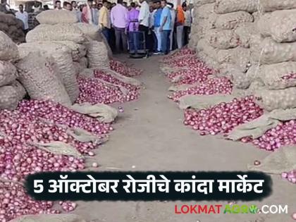 आज ०५ ऑक्टोबर रोजी राज्यातील बाजार समित्यांमध्ये जवळपास २५ हजार क्विंटल कांदा आवक झाली. यामध्ये पुणे बाजारात लोकल कांद्याची सर्वाधिक १५ हजार क्विंटल आवक झाली. आज कांद्याला कमीत कमी ११०० रुपयांपासून ते १५०० रुपयांपर्यंत सरासरी दर मिळाला.