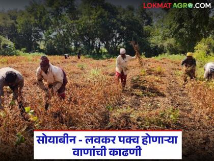 Soyabean Kadhani : एकीकडे मराठवाड्यातील बहुतांश भागातील सोयाबीन पिके नष्ट झाली आहेत. इतरही अनेक पिकांचे पुरात नुकसान झाले आहे. मराठवाडा वगळता राज्यातील इतर जिल्ह्यातील सोयाबीन पीक पक्वतेच्या अवस्थेत तर काही ठिकाणी काढणीच्या अवस्थेत आहे. अशा लवकर पक्व होणाऱ्या सोयाबीनची काढणी कधी करावी, हे पाहुयात...
