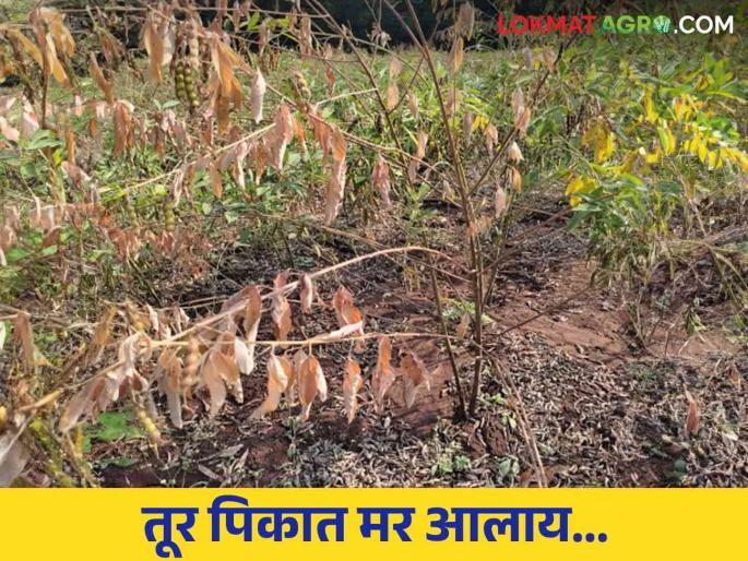 मर रोगाची लक्षणे- हा रोग फ्युजारियम उडम या जमिनीत वास्तव्य करणाऱ्या बुरशीमुळे होतो. तूर पिकामध्ये मर रोगाचा प्रादुर्भाव रोपावस्थेपासून ते शेंगा धरण्याच्या अवस्थेपर्यंत होतो.- जमिनीचे तापमान २५ ते २८ अंश सेल्सिअस व ओलावा २० ते २५ टक्के असल्यास मर रोगाचा प्रादुर्भाव मोठ्या प्रमाणात होतो.- शेंगा पक्व होण्याच्या कालावधीत प्रादुर्भाव झाल्यास उत्पादनात मोठी घट येते.- पानाच्या शिरा पिवळ्या होतात व पाने पिवळी पडतात. झाडाचे शेंडे मलूल होतात व कोमेजतात.- जमिनीमध्ये पुरेसा ओलावा असताना सुद्धा पाण्याचे वहन या बुरशीच्या प्रादुर्भावामुळे थांबल्याने झाडाच्या वरच्या बाजूला भागाला पाणी पोहोचत नसल्यामुळे पाने पिवळी पडतात व नंतर झाड हिरव्या स्थितीत वाळते.- जमिनीलगतच्या खोडाचा भाग काळ्या रंगाचा बनतो. मूळ उभे चिरले असता मुळाचा मध्य भाग काळा दिसतो. यात बुरशीची वाढ झालेली दिसते.- वाळलेल्या झाडाची पाने गळत नाही. तसेच रोगाची तीव्रता पीक फुलोरा तसेच शेंगा भरण्याच्या अवस्थेत जास्त असते. अंशतः मर हे सुध्दा मर रोगाचे लक्षण आहे.- अशा झाडांच्या एक किंवा दोनच फांद्या वाळलेल्या असतात, उर्वरीत संपूर्ण झाड सामान्य स्थितीत असते.- रोगग्रस्त झाड उपडले असता ते सहज उपडून येत नाही त्याला उपडण्याकरीता निरोगी झाडा एवढीच ताकद लागते.
