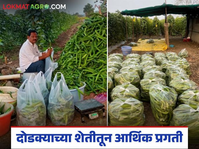 एक एकर क्षेत्रावर दोडक्याची लागवड करत असून, त्यातून त्यांना वार्षिक पाच ते सात लाख रुपयांचे उत्पन्न मिळते. कमी कालावधीत अधिक उत्पादन देणारे पीक म्हणून दोडक्याकडे पाहिले जाते. लागवडीनंतर साधारण ५५ दिवसांत दोडके तोडणीस येतात. सदर पिकासाठी काळजी घेणे महत्त्वाचे असून, वेल वाढत असताना बांबू व तारांच्या साह्याने आधार द्यावा लागतो असे शेतकऱ्याने सांगितले.