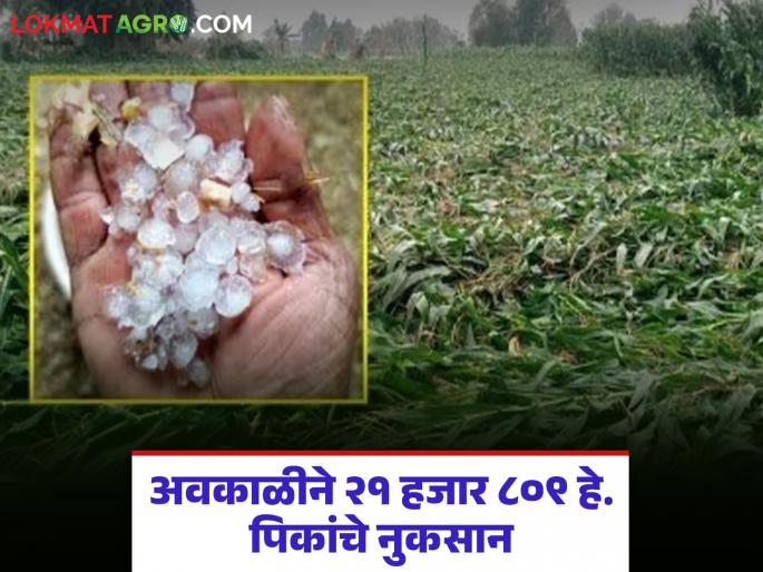Web Summary : Jalgaon's farmers are reeling after a severe hailstorm and unseasonal rain damaged crops across 455 villages. The disaster impacted over 21,000 hectares, leaving 27,631 farmers in distress, with maize crops suffering the most.