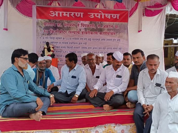 घारगाव : संगमनेर तालुक्यातील घारगाव-पिंपळदरी रस्त्याचे डांबरीकरण करण्याच्या मागणीसाठी घारगाव येथे सामाजिक कार्यकर्ते योगेश भोसले यांनी शुक्रवारपासून (दि.१) उपोषण सुरू केले आहे. जोपर्यंत रस्त्याचे काम सुरु होत नाही, तोपर्यंत उपोषण मागे घेणार नसल्याचे त्यांनी सांगितले.