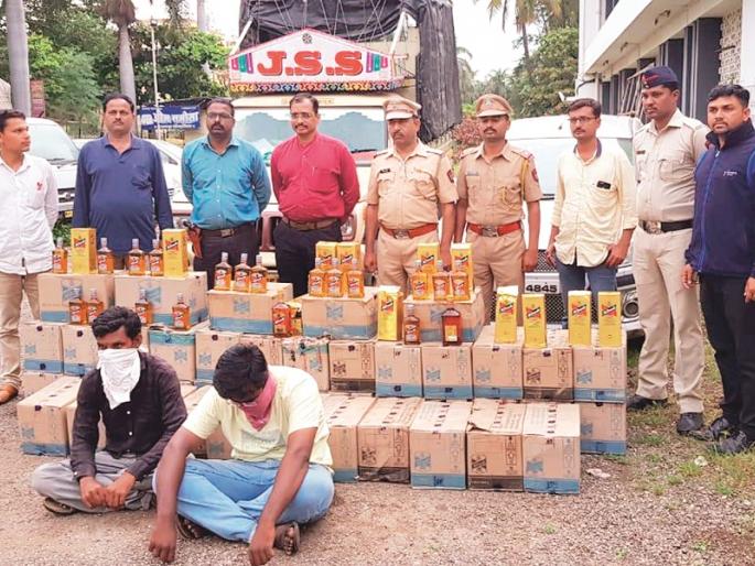 अहमदनगर : राज्य उपादन शुल्कच्या श्रीरामपूर येथील भरारी पथकाने देवळालीप्रवराजवळ एक पिकअप टेम्पो पकडून १९ लाख ५२ हजार रुपयांची बनावट विदेशी दारु जप्त केली़ यावेळी दोघांना अटक करण्यात आली़ मंगळवाळी रात्री ही कारवाई करण्यात आली़ रिजवान खालीद इनामदार व समीर सांडू शेख (रा़ दोघे कोकणगाव ता़संगमनेर) असे अटक केलेल्या दोघांची नावे आहेत़ कारवाईदरम्यान या दोघांसोबत असलेला एक जण पसार झाला़ आरोपींकडून नामांकित कंपनीचे नाव वापरून तयार केलेल्या बनावट दारुचे ४५ बॉक्स,एक पिकअप वाहन व एक मारुती सुझुकी इर्टिगा कार जप्त करण्यात आली़उत्पादन शुल्कचे पोलिस अधीक्षक पराग नवलकर यांच्या मार्गदर्शनाखाली श्रीरामपूर भरारी पथकातील प्रभारी निरिक्षक सुरज कुसळे़ दुय्यम निरिक्षक पी़बी़ अहिरराव, के़ यू़ छत्रे, कोपरगाव विभागाचे निरीक्षक बी़टी घोरतळे, ए़ व्ही़ पाटील, अहमदनगर विभागाचे निरीक्षक ए़ बी़ बनकर,कॉन्स्टेबराजेंद्र कदम, विकास कंठाळे, दीपक बर्डे, प्रवीण साळवे, निहाल उके, संगीता जाधव, वर्षा जाधव यांच्या पथकानेही ही कारवाई केली़ ही दारु कोठून आणली व विक्रीसाठी कुठे नेण्यात येत होती़ याची चौकशी अधिकारी करत आहेत़