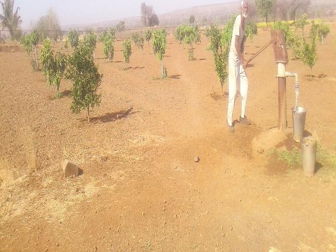 नानासाहेब जठारविसापूर : चांभुर्डी (ता. श्रीगोंदा) येथील समाजसेवक विजय बोºहाडे कावडीने पाणी घालून सव्वाशे झाडांची आमराई जगविण्याचा प्रयत्न करीत आहेत. सध्याच्या भीषण दुष्काळी स्थितीतही या समाजसेवकाने पाण्याचे योग्य नियोजन करून आंब्याची झाडे जगविली आहेत.बोºहाडे हे मुळचे पुणे शहरातील रहिवासी होते. मात्र त्यांनी लहानपणी समाजसेवेचा ध्यास घेतला. त्यांनी पदवीपर्यंत शिक्षण घेतले. त्यानंतर कोणतीही नोकरी न करता सामाजिक क्षेत्रात काम करण्याचा निर्णय घेतला. त्यासाठी त्यांनी विवाह केला नाही. त्यांनी घरदार सोडून कश्यप सेवाभावी संस्थेची स्थापना केली. त्या संस्थेच्या माध्यमातून त्यांनी काही देणगीदारांची मदत घेऊन पुणे जिल्ह्यात अनेक ठिकाणी शाळा खोल्या श्रमदान व लोकसहभागातून बांधून दिल्या आहेत. चांभुर्डी येथे सामाजिक काम सुरू करण्याचा आग्रह त्यांच्याशी पुणे येथे त्यांच्या संपर्कात आलेल्या येथील काही ग्रामस्थांनी केला. त्यानंतर बोºहाडे यांनी चांभुर्डी येथे विसापूररोड लगत पाच एकर जमीन खरेदी केली. या ठिकाणी अनाथालय सुरू करण्याचा त्यांचा उद्देश होता. मात्र शासनाच्या जाचक अटी व स्थानिकांकडून अपेक्षित सहकार्य मिळविण्यात त्यांना यश आले नाही. यासाठी त्यांनी पाच खोल्या बांधलेल्या आहेत. त्या ठिकाणी ते एकटेच रहातात. तेथे त्यांनी केशर जातीचे १२० आंब्याची झाडे लावली आहेत. त्यांनी तेथे बोअरवेल घेऊन त्यावर हातपंप बसवला आहे. हातपंपामुळे पाण्याचा मर्यादित उपसा होतो. एवढ्या भयंकर दुष्काळी परिस्थितीही त्या हातपंपाला पाणी आहे. सध्या ते हे पाणी कावडीच्या साह्याने आंब्याच्या झाडांना घालत आहेत. पाणी टंचाई असल्याने गावातील लोकही या हातपंपाचे पाणी प्यायला घेऊन जातात.‘बोअरवेल’मध्ये विद्युत पंपाने पाण्याचा उपसा केल्यास पाण्याची पातळी खोलवर जाते. त्यामुळे दुष्काळी परिस्थितीत पाणी टंचाईचा सामना करावा लागतो. हातपंपामुळे आवश्यकतेनुसार पाण्याचा वापर करता येतो. या आंबा बागेत जी फळे येतील त्यांची विक्री न करता बागेत येऊन विसावा घेणारांना ही फळे विना मोबदला येथेच खाता येतील. मात्र बरोबर घेऊन जाता येणार नाहीत.-विजय बोºहाडे, समाजसेवक, चांभुर्डी, ता. श्रीगोंदा