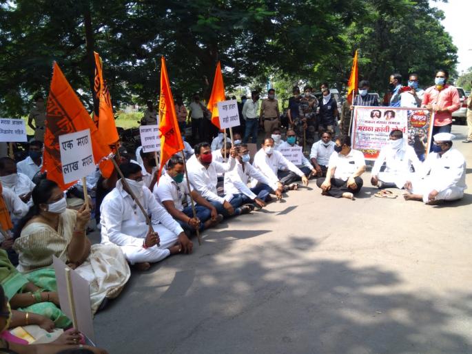 संगमनेर : काँग्रेस प्रदेशाध्यक्ष, महसूलमंत्री बाळासाहेब थोरात यांच्या संगमनेर येथील निवासस्थानासमोर मराठा क्रांती मोर्चाच्या वतीने आंदोलनाला सुरूवात झाली आहे.