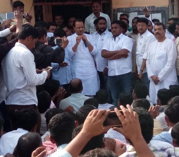 गुरुवारी (दि़ १६) सकाळी ७.३० वाजता माजी उपमुख्यमंत्री अजित पवार यांनी नगरमध्ये जखमी शेतक-यांची दवाखान्यात जाऊन भेट घेतली. तसेच त्यांच्या प्रकृतीची विचारपूस केली. यावेळी आमदार संग्रामभैय्या जगताप, राष्ट्रवादी काँग्रेस युवक प्रदेश उपाध्यक्ष कुमारभाऊ वाकळे, गटनेते संपतदादा बारस्कर, माजी नगरसेवक संजुभाऊ झिंजे आदी उपस्थित होते. बुधवारी दिवसभर धुमसत असलेल्या आंदोलनाचे केंद्रबिंदू ठरलेल्या घोटण, खानापूर गावातील शेतक-यांशीही अजित पवार यांनी गुरुवारी सकाळी ९.३० वाजता संवाद साधला. घोटण येथे बोलताना ते म्हणाले, हिवाळी अधिवेशनात याबाबत आवाज उठविणार असून, हे सरकार शेतकरीविरोधी असल्यामुळेच शेतक-यांवर थेट गोळीबार करण्याची ताकद पोलिसांमध्ये आली. या प्रकरणाची चौकशी होऊन दोषींवर कारवाई करावी. शेतक-यांचे प्रश्न सोडविण्यात या सरकारला पूर्णपणे अपयश आल्याचे पवार म्हणाले.