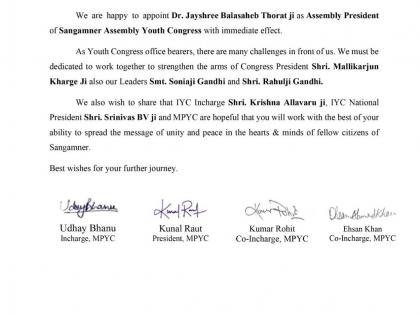 Congress Balasaheb Thorat ( Marathi News ) : राजकीय नेत्यांच्या मुलांचा राजकारणात होणारा प्रवेश ही नवी गोष्ट नाही. मुलांसोबतच आता राजकीय नेत्यांची मुलीही आपल्या पित्याचा राजकीय वारसा पुढे नेण्यासाठी मैदानात उतरत असल्याचं चित्र अलीकडच्या काळात दिसून येत आहे. काँग्रेसचे ज्येष्ठ नेते आणि आमदार बाळासाहेब थोरात यांची कन्याही आता राजकारणात सक्रीय होणार असल्याचं स्पष्ट झालं आहे. कारण जयश्री थोरात यांची आज संगमनेर तालुका युवक काँग्रेसच्या अध्यक्षा म्हणून नियुक्ती करण्यात आली आहे.