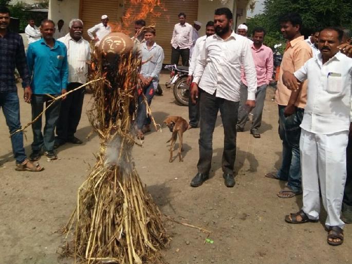 राळेगणसिद्धी : पारनेर तालुक्यातील वडनेर बुद्रूक येथील एका कार्यक्रमात मराठा समाजाविषयी शिवसेनेचे आमदार विजय औटी यांनी केलेल्या आक्षेपार्ह वक्तव्याच्या निषेधार्थ आज पिंपळनेर येथे औटींच्या पुतळ्याचे दहन करण्यात आले. मराठा समाजातील कार्यकर्त्यांनी एक दिवस गाव बंद ठेवून आमदार औटी यांचा निषेध केला.रविवारी वडनेर बुद्रूक येथे आमदार विजय औटी यांच्या प्रमुख उपस्थितीत एका कार्यक्रमाचे आयोजन करण्यात आले होते. येथे झालेल्या एका कार्यक्रमात आमदार औटी यांनी भाषणातून मराठा समाजाबाबत अपशब्द वापरले. याची व्हिडिओक्लिप सोशल मीडियावर व्हायरल झाली. त्यामुळे येथील मराठा समाजातील कार्यकर्त्यांकडून त्यांचा निषेध नोंदविण्यात आला. त्यानुसार पिंपळनेर येथील मराठा समाजातील तरूणांनी आज सकाळीच गावातील मुख्य चौकात आमदार औटींच्या पुतळ्याचे दहन करून त्यांचा निषेध केला. यावेळी मराठा समाजातील तरुणांनी जोरदार घोषणाबाजी देखील केली. सुभाष गाजरे, पोपट रासकर, देवेंद्र लटांबळे, दादा लटांबळे, संदीप शिर्के, विक्रांत गाजरे, सोमनाथ गाजरे, नवनाथ रासकर, संतोष रासकर, दत्तात्रय लटांबळे, अनिल सोनटक्के, सुजित वाढवणे, शैलेश गाजरे आदी कार्यकर्ते यावेळी उपस्थित होते.