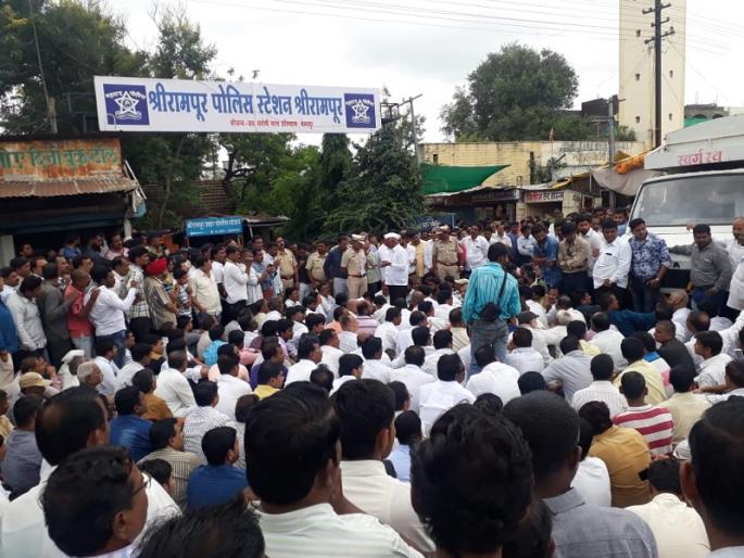श्रीरामपूर : सतरा दिवसांपासून उपचार सुरु असलेल्या सराफ व्यावसायिकाच्या मृत्य झाल्यानंतर श्रीरामपुर शहरात तणाव निर्माण झाला आहे. त्यानंतर संतप्त व्यायसायिकांनी मृतदेह पोलिस स्टेशनमध्ये नेत पोलिसांच्या निलंबनाची मागणी केली. त्यानंतर पोलीस उपअधीक्षक पोलीस उपअधीक्षक सोमनाथ वाघचौरे यांनी कारवाई करण्याचे आश्वासन दिल्यानंतर पोलीस स्टेशनमधून मृतदेह हलविण्यात आला.शहरातील सराफ व्यावसायिक गोरख मुंडलीक यांनी विष घेऊन आत्महत्येचा प्रयत्न केला. १७ दिवस खासगी रुग्णालयात उपचार घेतल्यानंतर त्यांचा शुक्रवारी संध्याकाळी मृत्यू झाला. संगमनेर येथील पोलिसांनी मुंडलीक यांच्यावर चोरीचे सोने खरेदी केल्याचा आरोप केला होता. हे पोलीस पथक १आॅगस्ट रोजी मुंडलीक यांच्याकडे सोने मागण्याकरिता आले होते. याच तणावातून पोलिसांसमोरच त्यांनी विष घेऊन आत्महत्येचा प्रयत्न केला होता.द आज सराफ व्यावसायिकांनी शनिवारी दुपारी दोन वाजता मुंडलीक यांचा मृतदेह थेट पोलीस ठाण्यात नेला. दोषी पोलिसांचे निलंबन करा, त्यांच्यावर मृत्यूस कारणीभूत ठरल्याचा गुन्हा दाखल करा अशी मागणी केली. दोन तास मृतदेह ताटकळत राहिला. मोठा जमाव जमलं होता. यावेळी पोलीस उपअधीक्षक सोमनाथ वाघचौरे, गुन्हे अन्वेषण शाखेचे निरीक्षक दिलीप पवार, निरीक्षक श्रीहरी बहिरट, संपत शिंदे उपस्थित होते.