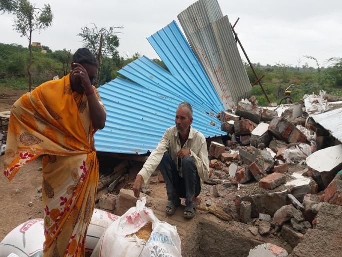 श्रीगोंदा : वन, महसूल व पोलीस यांच्या वतीने शुक्रवारी सकाळी श्रीगोंदा शहराच्या सीमारेषेवर असणाऱ्या पेडगाव रस्त्यावरील वन विभागाच्या जागेतील पक्की बांधकामे केलेली बेकायदा १३ घरे जमीनदोस्त करण्यात आली. अतिक्रमण हटविण्यास सुरूवात केल्यानंतर एका अपंगासह गोरगरीब कुटुंबांनी एकच आक्रोश केला.पेडगाव रस्त्यावर वन विभागाची सुमारे ४० हेक्टर मोकळी जमीन आहे. या जमिनीवरील काही झाडे तोडून १३ कुंटूबांनी अतिक्रमण करून बेकायदा घरे बांधली. अनेक धनदांडग्या मंडळीनी जागा धरली होती. त्यामुळे वन विभागाची मोठी जमीन अतिक्रमणाच्या विळख्यात सापडला होती. श्रीगोंद्याचे तहसीलदार महेंद्र महाजन, वन विभागाच्या भरारी पथकाचे वन परिक्षेत्रपाल सुनील शेटे, अश्विनी दिघे यांनी पोलीस बंदोबस्तात शुक्रवारी सकाळी जेसीबीच्या साह्याने पक्की घरे उद्ध्वस्त केली. दरम्यान काही जणांनी जिल्हाधिकाºयांशी संपर्क साधल्यानंतर शनिवारी दुपारपर्यंत अतिक्रमण काढण्याची मोहीम थांबविण्यात आली. त्यामुळे गोरगरिब माणसांना शेड काढण्यास काही कालावधी मिळाला.महिलेने फोडला हंबरडाएक महिन्यापूर्वी शेळ्या विकून घर बांधले. वास्तूशांती होण्यापूर्वीच घर पाडले. आता परमेश्वरा, पावसात कुठ जायचं? लेकरंबाळं बाळ उघड्यावर आली, असे म्हणत अनिता कुंडकर या महिलेने हंबरडाच फोडला.सर्वच सरकारी जमिनीवरील अतिक्रमणे हटविणारजिल्हाधिकारी कार्यालयाने शनिवारी दुपारपर्यंत अतिक्रमण काढण्याची मोहीम थांबविली आहे. त्यामुळे स्वत:हून अतिक्रमणे काढावीत, अन्यथा अतिक्रमणे पाडून साहित्य जप्त करण्यात येईल. तालुक्यातील सर्व सरकारी जमिनीवरील अतिक्रमणे काढण्यात येणार आहेत.-महेंद्र महाजन, तहसीलदार, श्रीगोंदा.अपंग कुटूंब बेघरआम्ही नवरा बायको अपंग आहोत. बचत गटातील पैसे उचलून शेड उभे केले. पण आता शेड काढण्याची वेळ आली. धरणीवर जागा नाही. खूप वाईट झालं. आता आम्ही कुठं जायचं.-जयश्री माने, अपंग महिला.