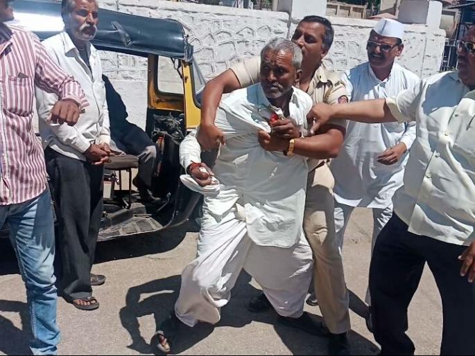 जिल्हाधिकारी कार्यालयासमोर शेतक-याचा आत्मदहनाचा प्रयत्न