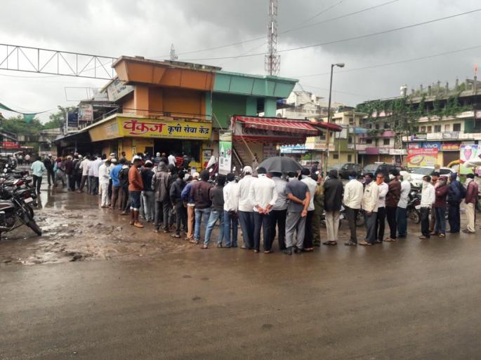 अकोले/ घारगाव : अकोले शहरातही सोमवारी सकाळी युरिया खतासाठी मोठी रांग लागली होती. पावसाच्या भुभुरमध्येही शेतकरी रांग लावून उ भे होते. प्रत्येक शेतकºयाला एक युरिया गोणी मिळत आहे.