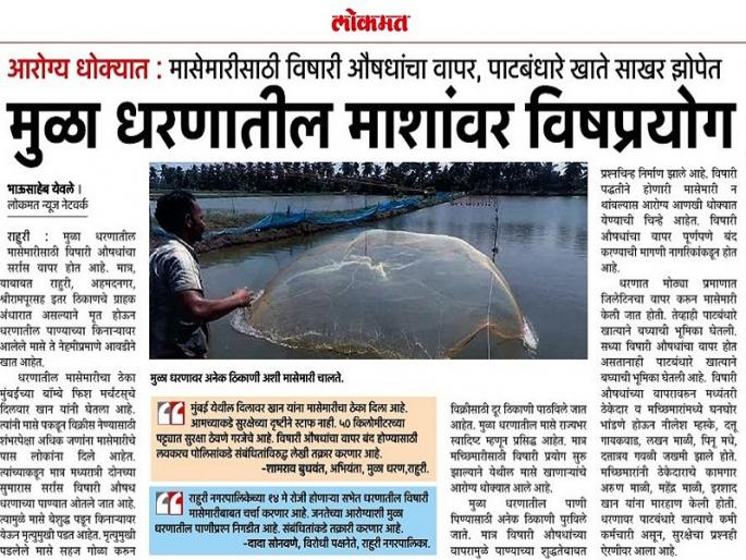 राहुरी : मुळा धरणातील माशांवर विषप्रयोग या मथळ्याखाली बुधवारी ‘लोकमत’मध्ये वृत्त प्रसिद्ध होताच खळबळ उडाली. मुख्यमंत्र्यांच्या कार्यालयातून या वृत्ताची दखल घेण्यात आली असून, जिल्हा पोलीस प्रमुखांना कारवाईचा आदेश देण्यात आला आहे. बुधवारी दुपारी पाटबंधारे खात्याने राहुरी पोलीस स्टेशनला पत्र देऊन पोलीस संरक्षणाची मागणी केल्याची माहिती मुळा धरण क्षेत्राचे अभियंता शामराव बुधवंत यांनी दिली. मुळा धरणामध्ये मध्यरात्री विषारी औषध टाकून मच्छिमारी होते. पाणी विषारी करणारे नेमके नेमके कोण आहेत, यादृष्टीने तपास सुरू आहे़ जिल्हा पोलीस प्रमुख रंजनकुमार शर्मा यांनी बुधवारी दुपारी राहुरीचे पोलीस निरीक्षक प्रमोद वाघ यांना मोबाईलवरून चौकशी करून कारवाईचा आदेश दिला आहे.मुंबई येथील ब्रीज फिशरीचे मोहमंद खान यांनी मुळा धरणातील माशाचा ठेका घेतला आहे़ ठेकेदार व मच्छिमारी करणारे यांच्यात वाद निर्माण झाला आहे. विषारी औषधांमुळे मच्छिमारी केल्याने आरोग्याचा प्रश्न निर्माण झाला आहे़ यासंदर्भात ठेकेदाराने मच्छिमारी करणाऱ्यांना मासेमारी जाळे पध्दतीने करावी, माशांवर विषप्रयोग करू नये, असा सज्जड इशारा दिला आहे़ त्यानंतर काही अवैध मच्छिमारांनी रात्रीच्या वेळी धरणात विष टाकून मच्छिमारी करण्याचा अघोरी प्रयोग केला आहे़ अघोरी मच्छिमारी करणाºयांनी मुळा धरणात असलेले कर्मचाºयांचे शेड उद्ध्वस्त केल्याचे समोर आले आहे़मुळा धरणावर अवैध व्यवसाय करणाºयांनी अतिक्रमण केले आहे़ अयोग्य पद्धतीने मच्छिमारी होत असल्याचे आढळून आले आहे़ धरणाच्या काठावर घरे बांधून बेकायदेशीर मच्छिमारी करणा-यांवर पाटबंधारे खात्याने कारवाई करण्याची गरज आहे़ मुळानगर परिसरात कुणीही येऊन राहत असल्याने गुन्हेगारी प्रवृत्ती वाढली आहे़ धरण परिसरात येणाºया पर्यटकांनाही लुटमार करण्याचे प्रकार वाढल्याने संरक्षणाचा प्रश्न गंभीर बनला आहे़. मुळा पाटबंधारे विभागाकडे मनुष्यबळ कमी असल्याचे सांगितले जाते. अनेक कर्मचारी निवृत्त झालेले आहेत़ त्यामुळे धरणाच्या ५० किलोमीटर परिसरात संरक्षण करणे पाटबंधारे खात्याच्या आवाक्याबाहेर आहे़ पोलीस संरक्षण मागण्यात आले असले, तरी पोलिसांची संख्याही कमी आहे़ त्यामुळे विषारी पद्धतीने होणारी मच्छिमारी कशी रोखणार? हा कळीचा मुद्दा पुढे आला आहे़