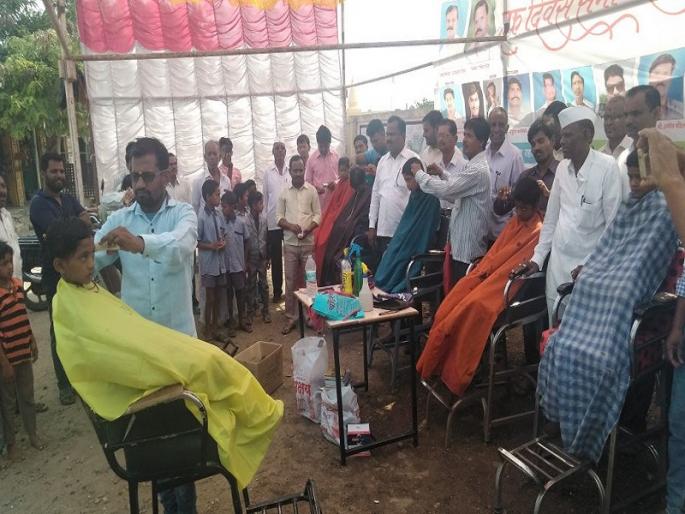 कुकाणा : ‘जो येईल पहिल्या दिवशी शाळेत, त्याची कटींग होईल मोफत’ हा नाविन्यपूर्ण उपक्रम राबविण्यात कुकाण्यामधील शाळेत राबविण्यात आला. पहिल्या दिवशी शाळेत मुलांची उपस्थिती वाढावी याउद्देशाने हा उपक्रम राबविण्यात आला.महाराष्ट्र नाभिक महामंडळ संचलित श्री.संत सेना महाराज ग्रुप व युवक बचत गट कुकाणा यांच्या विद्यमाने जिल्हा परिषद प्राथमिक विद्यार्थ्यांची मोफत कटींग करण्यात आली. नाभिक बांधवाचे हे नाविन्यपूर्ण मोफत सलून जिल्हा परिषद प्राथमिक शाळेच्या परिसरात मंडप देऊन थाटण्यात आले होते. याठिकाणी एकुण दहा खुर्च्यांची व्यवस्था केल्याने एकाच वेळी दहा मुलांच्या कटींग होत होती. सकाळी ११ वाजेपर्यंत शंभरहुन अधिक मुलांच्या कटींग करण्यात आल्या. अक्षय कलेक्शन व जय किसान दुध संकलन केंद्राचे संचालक अरुण फोलाणे यांच्या तर्फे मुलांना वही व पेन देण्यात आले.या नाविन्यपूर्ण उपक्रमाचे उदघाटन माजी सरपंच दौलत देशमुख व सामाजिक कार्यकर्ते केशव दरदंले यांच्या हस्ते करण्यात आले. यावेळी प्रा.मच्छिंद्र भोसले, कारभारी गोर्डे, उपसरपंच भाऊसाहेब फोलाणे, राष्ट्रवादीचे जिल्हा उपाध्यक्ष अशोक चौधरी, बाळासाहेब कचरे, भारत गरड, मुख्याध्यापक सुनिल जाधव, किशोर भंडारी, उमेश सदावर्ते, प्रगत शेतकरी केंद्राचे संचालक संपतलाल मुनोत, विठ्ठल कावरे, बाळासाहेब गर्जे, निलेश काळे आदि मान्यवर उपस्थित होते. उपक्रम यशस्वी करण्यासाठी संत सेना महाराज ग्रुप व युवक बचत गटाच्या पदाधिकारी व जिल्हा संघटक अशोक पंडित, अनिल पंडित, अर्जुन पंडित, ज्ञानेश्वर लिंगायत, संजय वाघ, शरद कदम, सुभाष पंडित, संजय बोरूडे, गोकुळ वाघमारे, संदीप वाघ, गणेश कदम, किशोर पंडित, सचिन वाघ, सचिन पवार, राजेंद्र गायकवाड,अमोल पंडित, अनिल वाघमारे, भारत कदम, राजेंद्र पंडित यांनी परिश्रम घेतले.