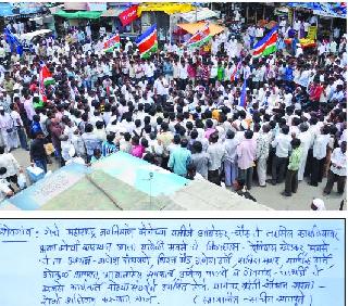 शेवगाव : टंचाईस्थितीच्या पार्श्वभूमीवर शेवगाव येथे शुक्रवारी ‘मनसे’च्यावतीने तहसील कार्यालयावर मोर्चा नेऊन शेवगाव-पैठण मार्गावर अचानक तासभर रास्ता रोको आंदोलन करण्यात आले.शेवगाव तालुक्यात गंभीर दुष्काळीपरिस्थिती निर्माण झाली आहे. पिण्याच्या पाण्यासाठी जनावरांबरोबर माणसांवर ऐन पावसाळ्यात भटकंतीची वेळ आली आहे. पाण्याच्या टँकरला डिझेल मिळत नाही, मृत माणसालाही पाजण्यासाठी पाणी मिळत नाही, असे निदर्शनास आणून देत ‘मनसे’चे जिल्हाध्यक्ष देविदास खेडकर यांंनी तालुक्यातील भीषण दुष्काळी स्थितीचा आढावा घेतला. पक्षाचे तालुकाध्यक्ष गणेश रांधवणे, गणेश गर्जे यांचीही भाषणे झाली. शेवगाव, पाथर्डी हे तालुके दुष्काळी जाहीर करावे, बीड-परळी रेल्वेमार्ग मार्गी लावावा, इंधन दरवाढ कमी करावी आदी मागण्या यावेळी करण्यात आल्या. शेवगावचे तहसीलदार हरिष सोनार, शेवगाव तालुका कृषी अधिकारी अंबादास नाकाडे यांना निवेदन दिल्यानंतर आंदोलन मागे घेण्यात आले. आंदोलनात माणिकराव गर्जे, गोकुळ भागवत, आबासाहेब सपकाळ, अमोल पालवे, सतीश मगर, संजय वणवे तसेच पदाधिकारी, कार्यकर्ते सहभागी झाले होते.(तालुका प्रतिनिधी)अचानक रास्ता रोकोशेवगाव येथील आंबेडकर चौक ते मोची गल्ली, शिवाजी चौक ते तहसील कार्यालयावर ‘मनसे’च्यावतीने भव्य मोर्चा काढण्यात आला. त्यानंतर तहसील समोरील शेवगाव-पैठण मार्गावर सुमारे तासभर रास्ता रोको आंदोलन करण्यात आले. या रास्ता रोकोमुळे या मार्गाच्या दुतर्फा वाहनांच्या लांब रांगा लागल्या होत्या.