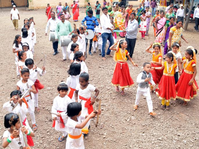 श्रीरामपूर येथील नवीन मराठी शाळेतील बालगोपाळांनी लेझीमवर ठेका धरीत गणरायाचे स्वागत केले़ मूर्ती प्रतिष्ठापनेसाठी चिमुकल्यांनी गावातून मिरवणूक काढून ‘श्रीं’ची मूर्ती आणली़ मिरवणुकीत चिमुकल्या मुली, मुलींनी लेझीमवर धरलेला ठेका सर्वांचे आकर्षण ठरला़